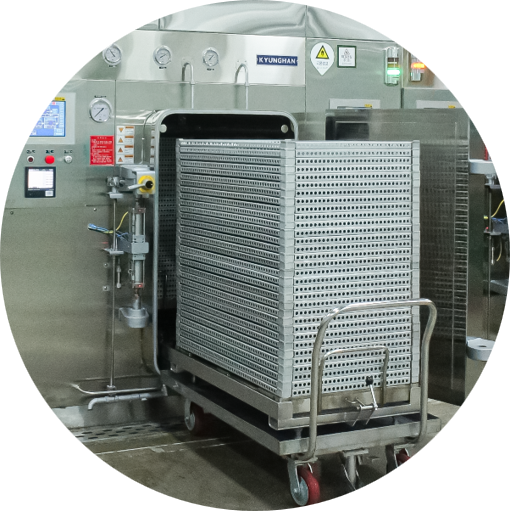 OEM/ODM 전담 마케터의 ONE STOP SERVICE,상담부터 개발, 생산, 상품출시 까지 함께합니다. OEM 주문자 상표 위탁 생산 Original Equipment Manufactureing 고객의 니즈에 따라 완제품을 생산하여 주문자 상표를 부착 납품하는 수탁 생산 방식 ODM 제조사 주도 개발 생산 Original Development Manufactureing 상품의 기획, 개발생산, 품질 관리 및 출하까지의전 과정에 대한 서비스를 제공하는 자체 개발주문 방식 고객의뢰 기술상담 연구 및 샘플제조성적 및 디자인 승인/계약원자재, 부자재 공급 초기제품생산 원부자재 공급 생산출고 대표 공정 대표 공정도 3번의 선별과 자동화 공정으로 믿을 수 있는 제품제공 01. 1차 선별 원재료 철저한 규격관리 및 점검원물 內 이물질 제거 02. 충진 원재료를 제품 파우치에 충진살균, 멸균 준비 03. 2차 선별 레트로트 제품의충전 및 이물질 확인 04. 레토르트 살균, 멸균 과정을 통하여더욱 맛있고 안전한 식품 가공 05. 3차 선별 레토르트 과정중 발생할 수 있는불량 제품 회수 06. 포장 해당 제품에 맞는 포장재를 사용하여 출고 준비 패키지 공정 개별 포장부터 박스포장까지고객사 맞춤 패키지 솔루션을 제공합니다. 조합 계량기 건조품, 냉동제품, 소분 계량 가능시간당 2,500EA 계량 가능(2대 보유)업체명 : 이시다 코리아 로터리 자동 포장기 스탠딩파우치 및 일반파우치 소분 포장추가기능 : 질소충진, 탈산소제 투입 가능업체명 : 리팩 제함기 팩키지 사이즈 Max 560L X 400W X 350H Min 250L X 180W X 120H 봉함기 팩키지 사이즈<br>Max 560L X 400W X400H<br>Min 250L X 160W X 120H 조합 계량기 스탠딩파우치 및 일반파우치 소분 포장추가기능 : 질소충진, 탈산소제 투입 가능업체명 : 리팩 파우치 폭(mm) : 100~240 길이(mm) : ~ 350 설비 공정 멸균/살균/가열/시즈닝/충진공정 안전하고 위생적인 제품 생산을 위한 체계적인 공정과 설비 레토르트 (멸균, 살균기) 건조품, 냉동제품, 멸균/살균 가능예시 : 레트로트 제품업체명 : 경한예시 : 레토르트 가능 용기에 담긴(과일 퓨레, 젤리, 죽, 국 등) 열풍 터널식 오븐 드럼 방식 원료를 유동적 가열 가능예시 : 어포 가공품, 식육함유 가공품, 농수산 펠렛(서리태, 병아리 콩 볶음, 견과류 로스팅, 팝콘, 두부칩 등) 시즈닝 텀블러 시즈닝(액상 분말, 오일코팅 가능) 예시 : 어포 가공품, 식육 함유 가동품, 과자류 액상충진기 액상 충진 가능(병, 말통)예시 : 오일류(유기농 코코넛 오일, 아마씨유, 홍화씨유, 대두유 등 특수 오일) 기타 건조/성형/ 이물 및 중량 선별 설비 현황 농산물 건조기 농산물 건조 가능(5대 보유)과채 가공품, 곡류 가공품과일칩 : 키위, 사과, 파인애플, 오렌지, 자몽 등채소칩 : 버섯, 케일, 연근, 당근, 비트, 무우 등 성형기 바(bar) 형태 및 스틱 성형단백질바, 고구마 퓨레바, 과일 퓨레바 등 X-RAY 검출기 내 포장 후 내부 검사업체명 : 이시다코리아 금속 검출기 금속 이물 검출 업체명 : 이시다코리아 중량 선별기 중량선별(내포장, 외포장 공정 가능)업체명 : 이시다코리아
